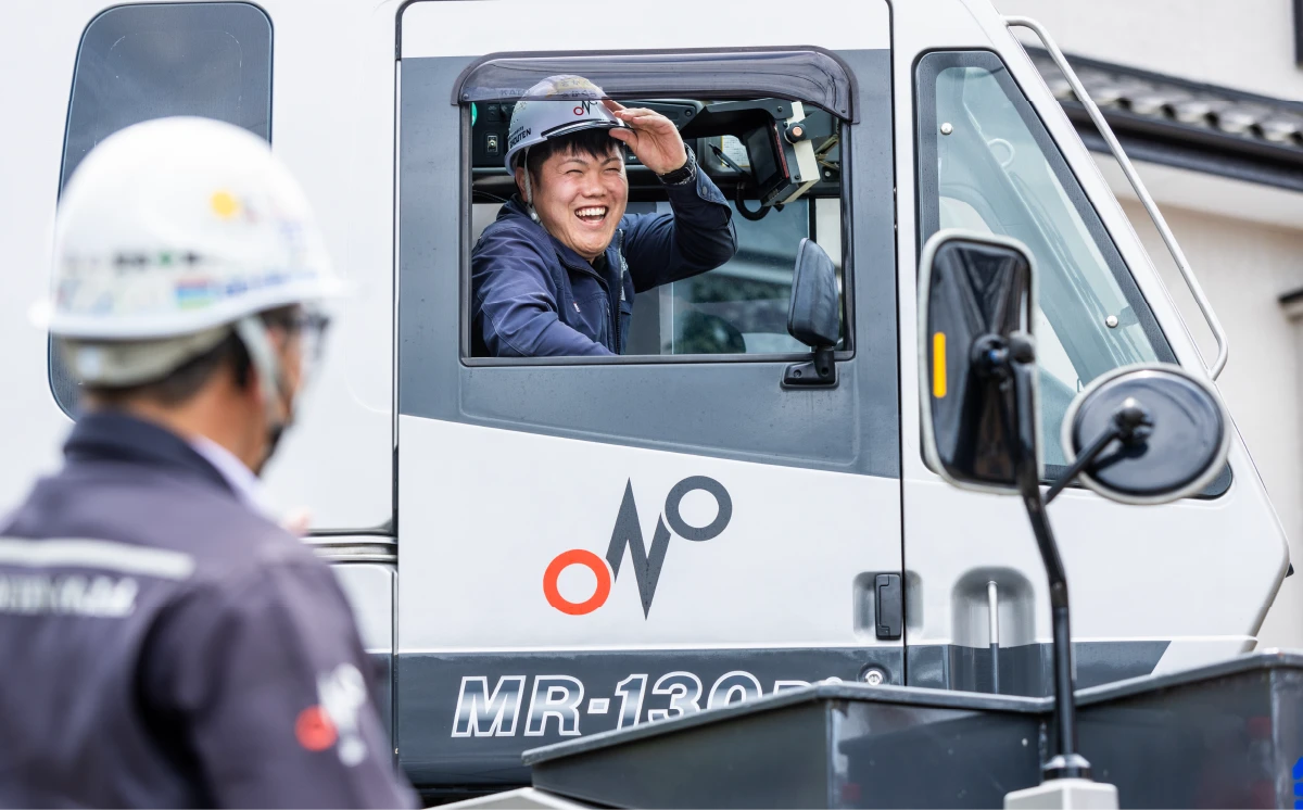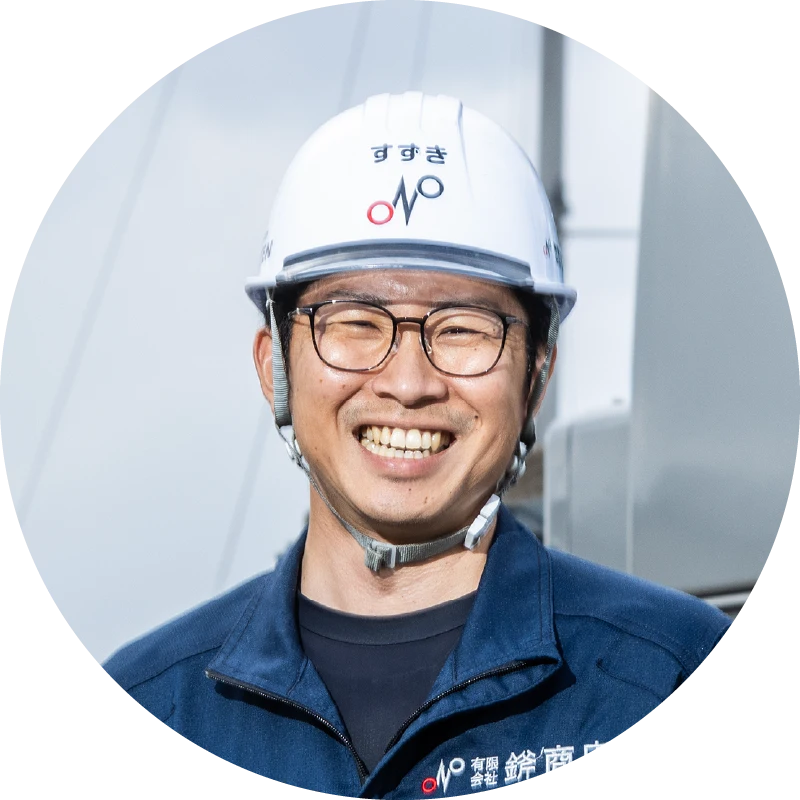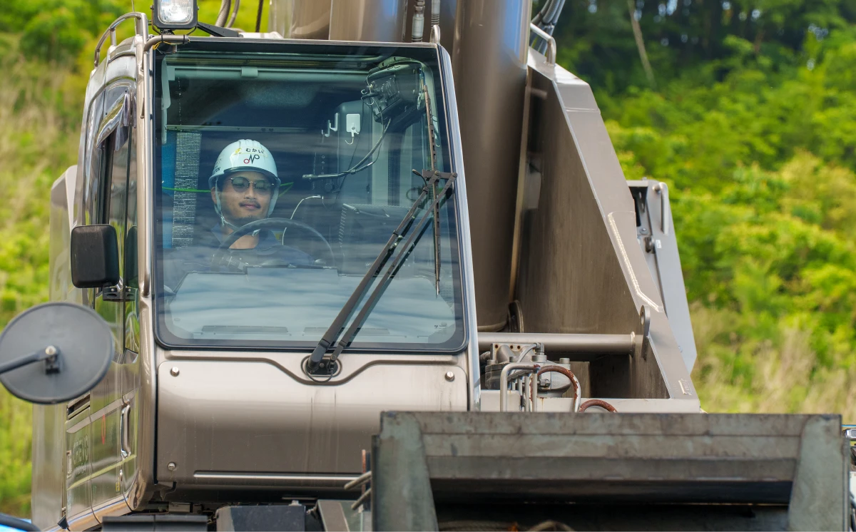 小さい頃から大好きな重機を自分の手で操縦したいという気持ちがあった事と、家の近くという事もあり昔からよく目にしていた「𨨞商店」というかっこいい名前を背負って仕事がしたい!!と思ったからです。